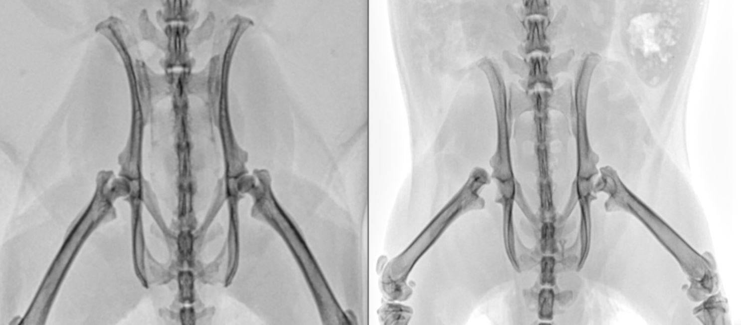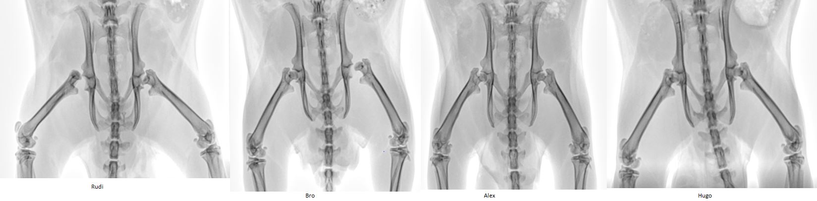 Alle 4 Ratten wurden geröntgt, da schon Erfahrung von Hüftproblemen von Laborratten vorhanden waren.
