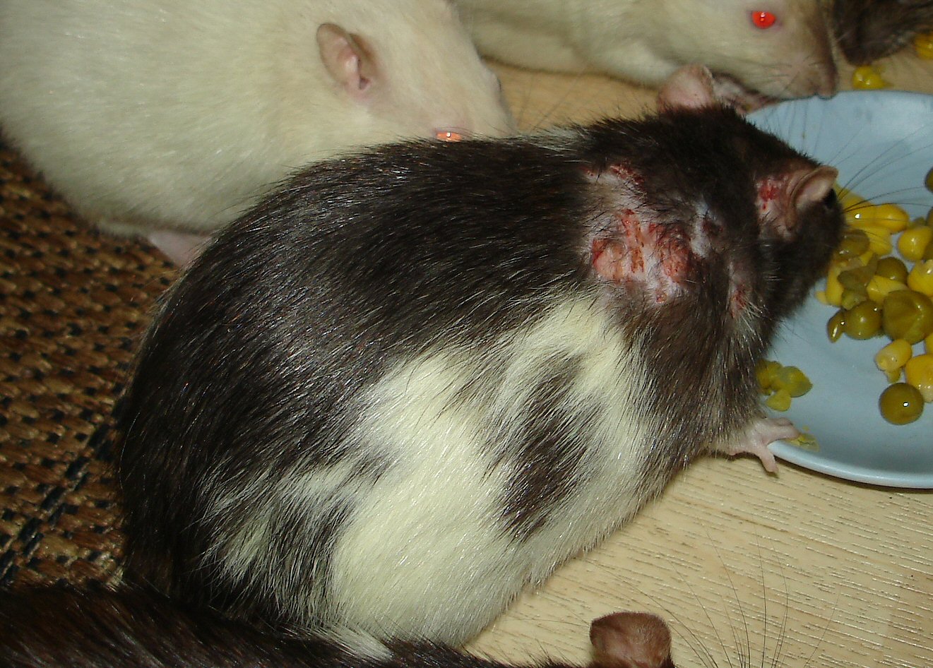 und Rangeleien, Parasiten, Pilze, usw. Wenn die Ratte sich erst