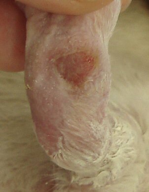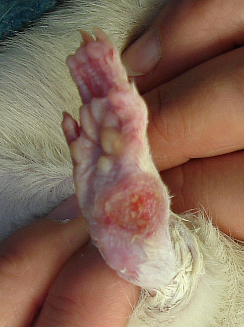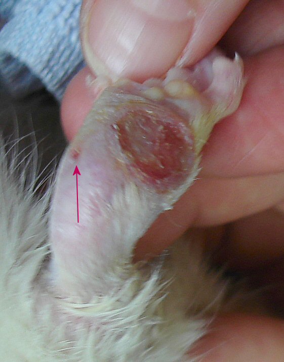 Sohlengeschwür an einer hinteren Pfote. Zudem schien schon