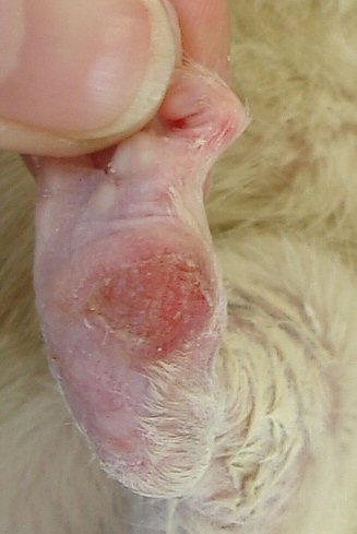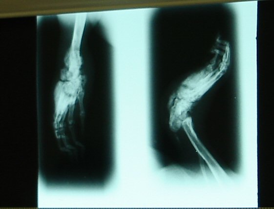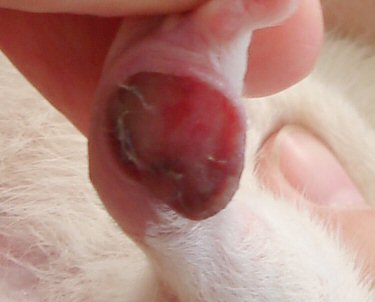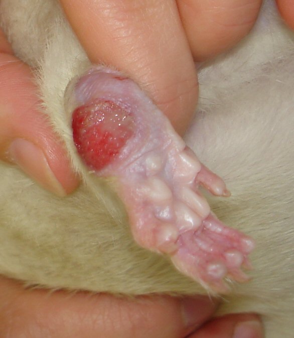 Bei Sam war im Ballen schon eine eitrige Entzündung vorhanden, wo